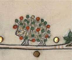 Which leaves us with the porcupine. It was a gift from William V of Montpellier who had gone on the First Crusade. Medieval bestiaries describe porcupines using their quills to spear fruit. They were also symbolic of sin -the fleshly ones apparently so an eminently suitable pet for womanising King Henry I. If you don’t fancy that particular sin othe bestiaries pinned avarice and covetousness on the porcupine and hedgehog – all those spikes collecting up everything around it.